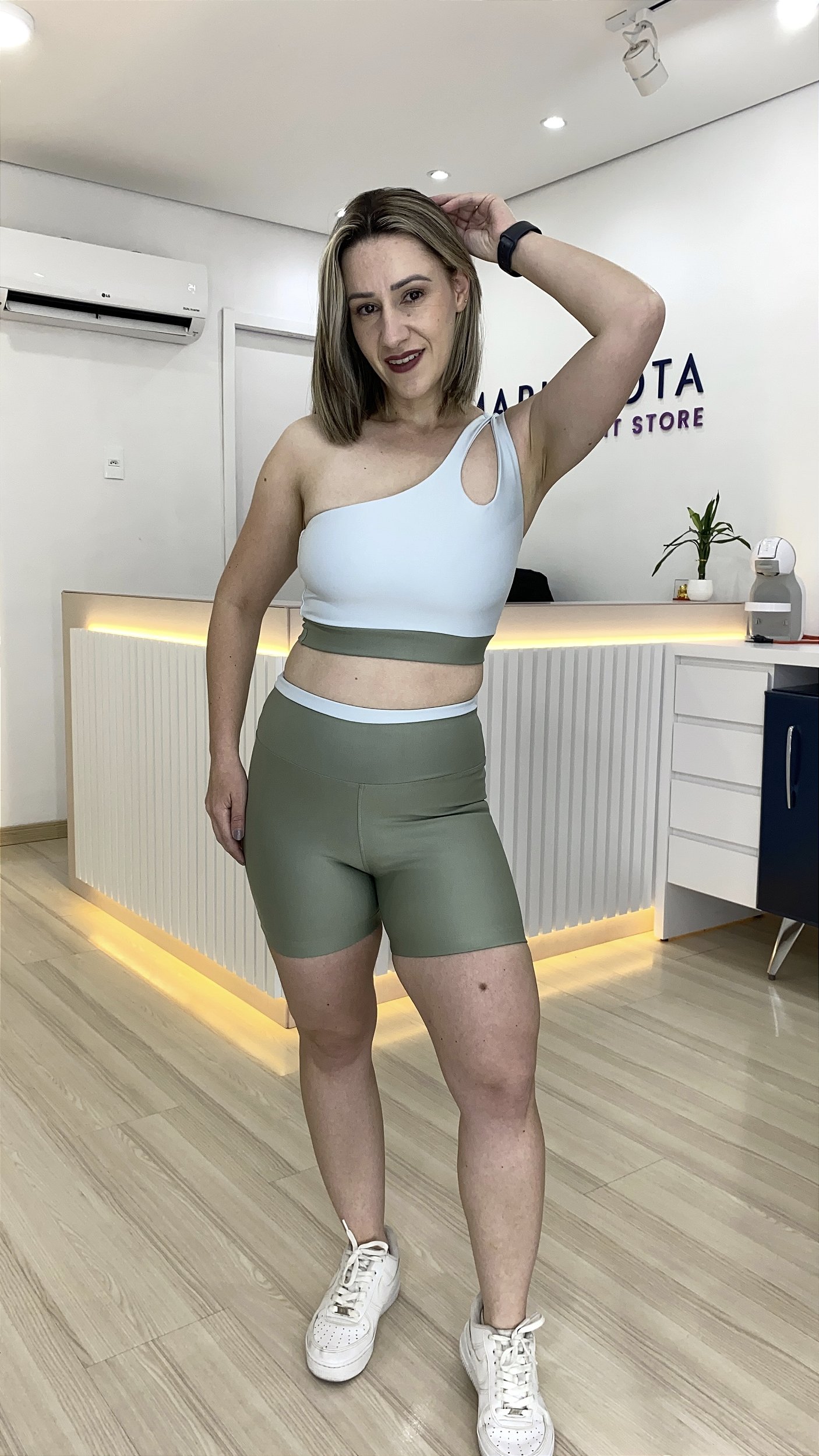 O conjunto une estilo minimalista com uma paleta de cores super em alta, oferecendo um visual sofisticado e funcional. Perfeito para quem gosta de peças diferenciadas, modernas e que valorizam o corpo.