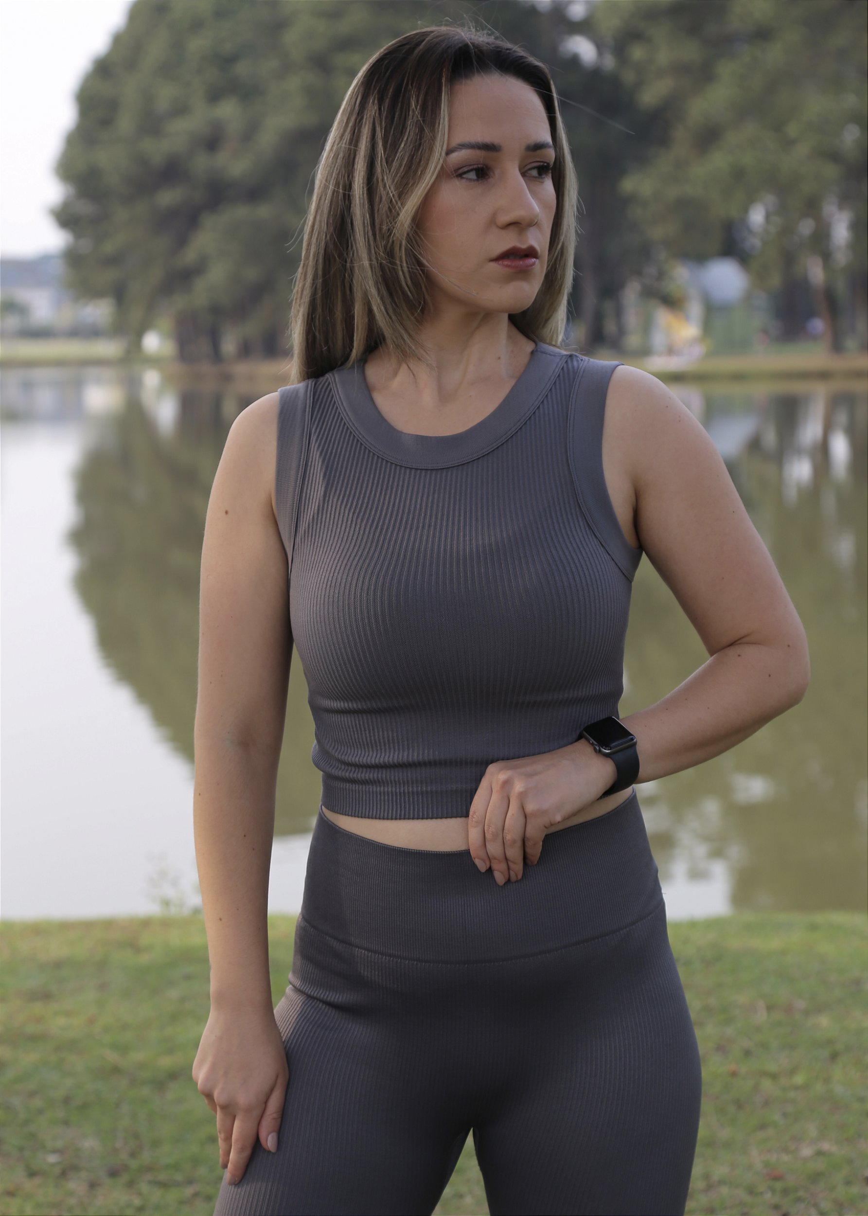 Conjunto Canelado Cinza Granada - Legging + Cropped