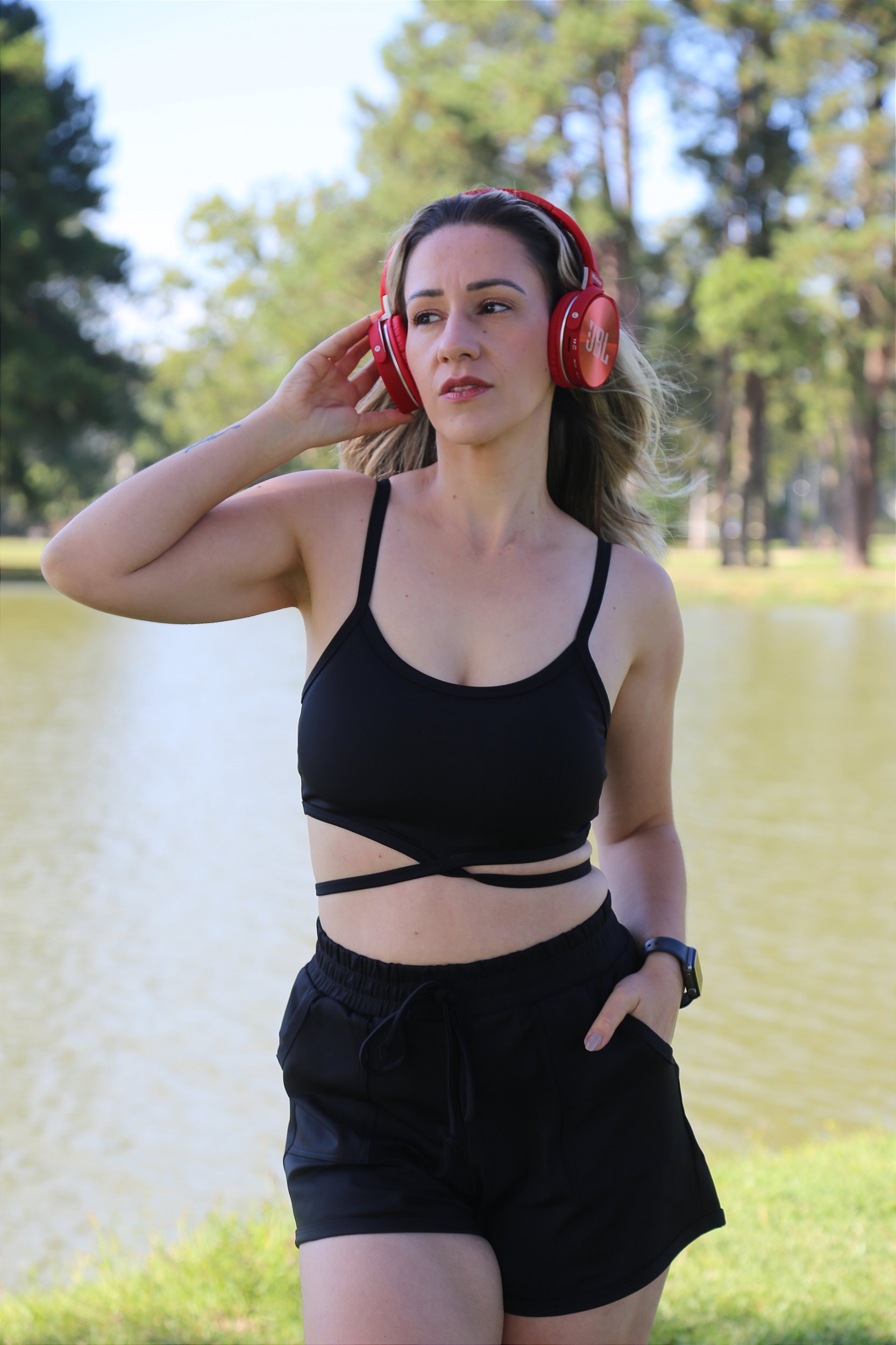 Composto pelo Shorts soltinho, que possui elástico na cintura, bolsos bem amplos nas laterais e pelo Top de alcinha, que possui bojo e também um detalhe de amarração na parte de baixo do top, deixando o look bem despojado, o top também possui bojo, com abertura para a retirada.