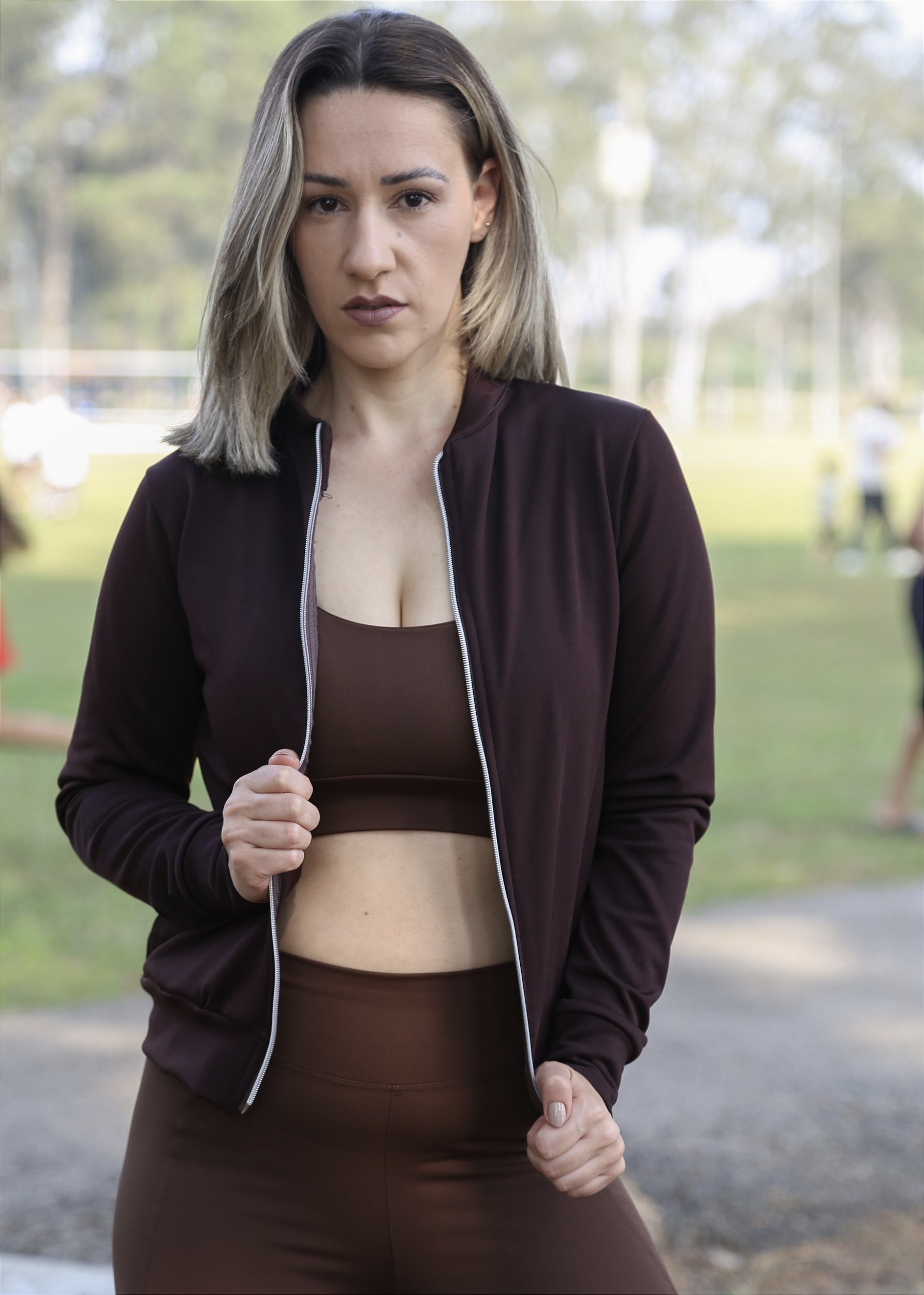 A Jaqueta Bomber é perfeita para os dias de outuno, quando precisamos de uma terceira peça para chegar com elegância e bela nos seus treinos.