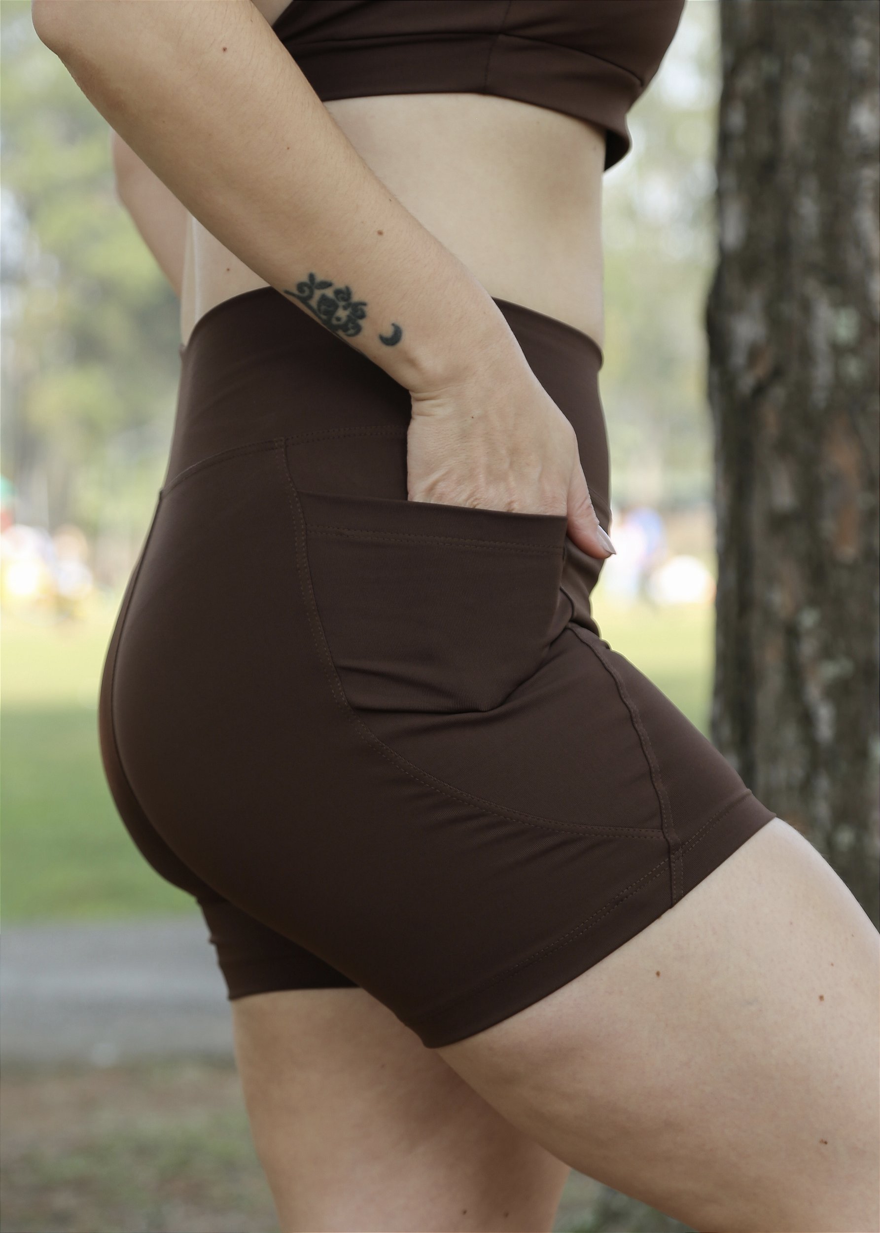 O Shorts Curto com bolso Toffee faz parte da Coleção Toffee and Coffee da Mariccota Fit Store, onde você encontra tons maravilhosos que combinam entre si.